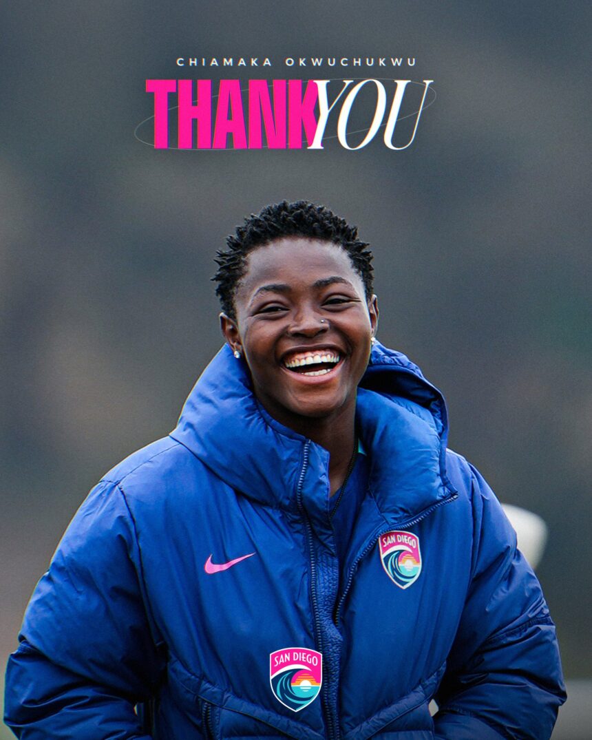 Nigeria forward, Chiamaka Okwuchukwu has left San Diego Wave FC following the club’s announcement of its end-of-year roster decisions ahead of the 2026 National Women’s Soccer League (NWSL) season, www.aclsports.com reports.